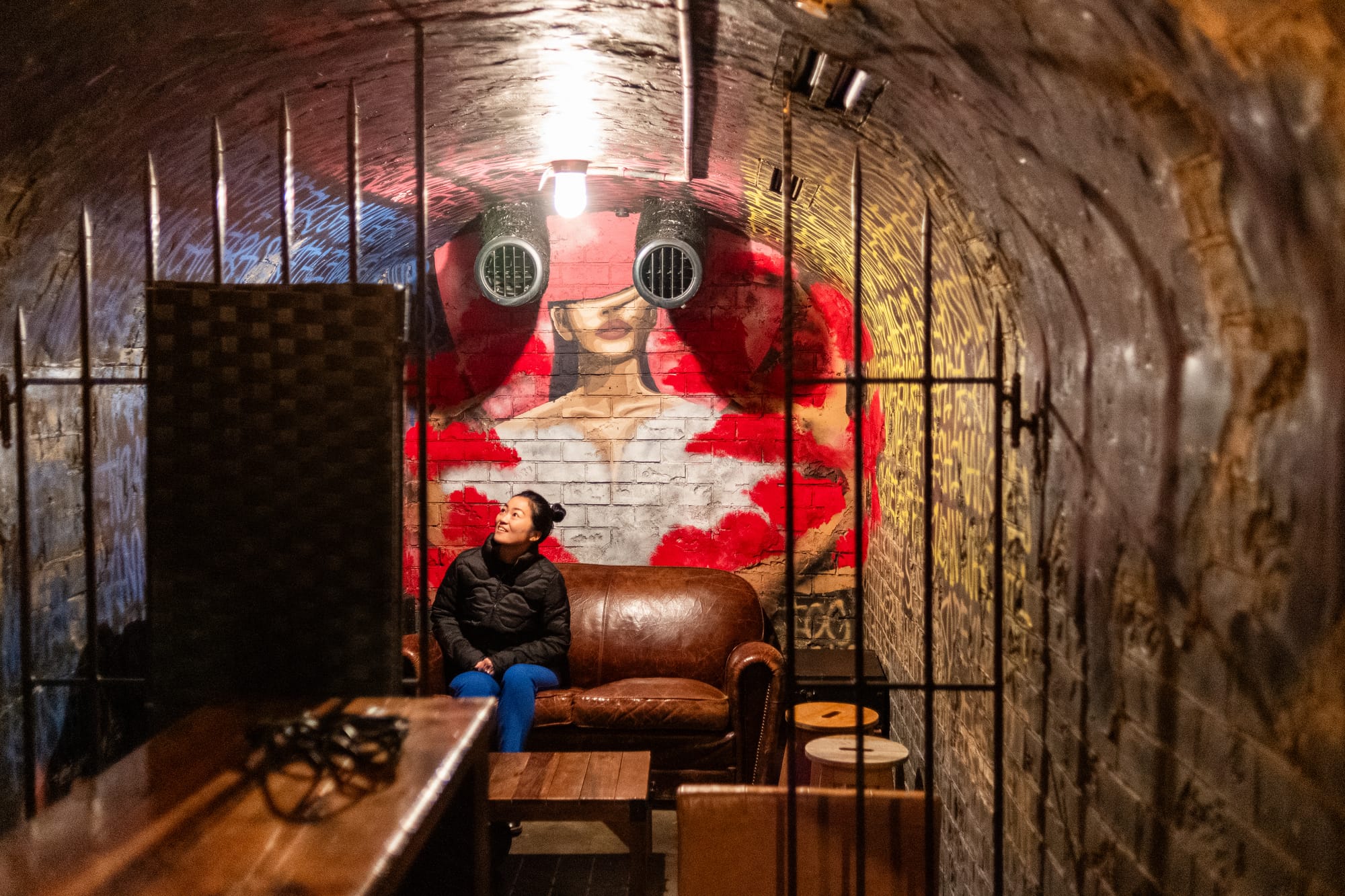Upon arrival, the owner, busy with preparations, asked us to wait upstairs. Ascending the super dark stairs, we entered a bar that looked like a medieval prison - a stark contrast to the bright and bustling street outside. My coworkers had gone up first, and I thought I'd taken a wrong turn. The surprise was real.