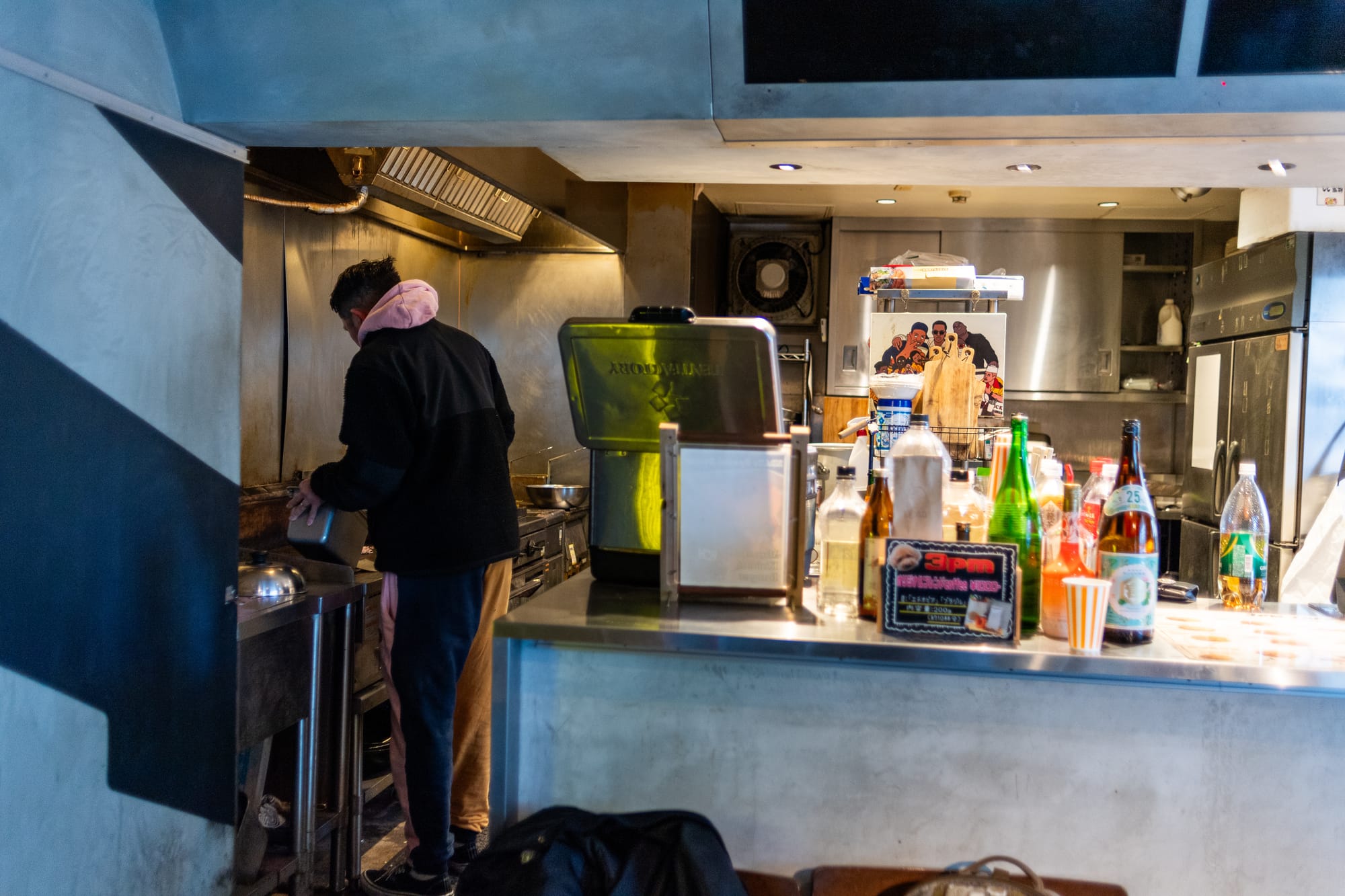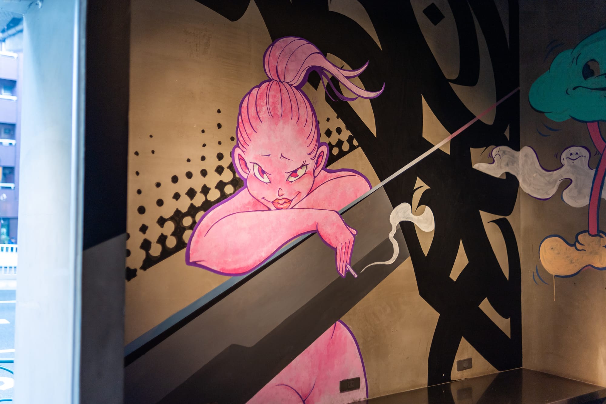 3pm Cafe, which transforms into a club on weekends, is adorned with turntables and alcohol bottles. The second floor houses a prison-themed backroom, adding to the venue's surreal vibe. The entire place, inside and out, is a canvas for local artists, with graffiti art that blends traditional hip-hop influences with more Japanese themes.
