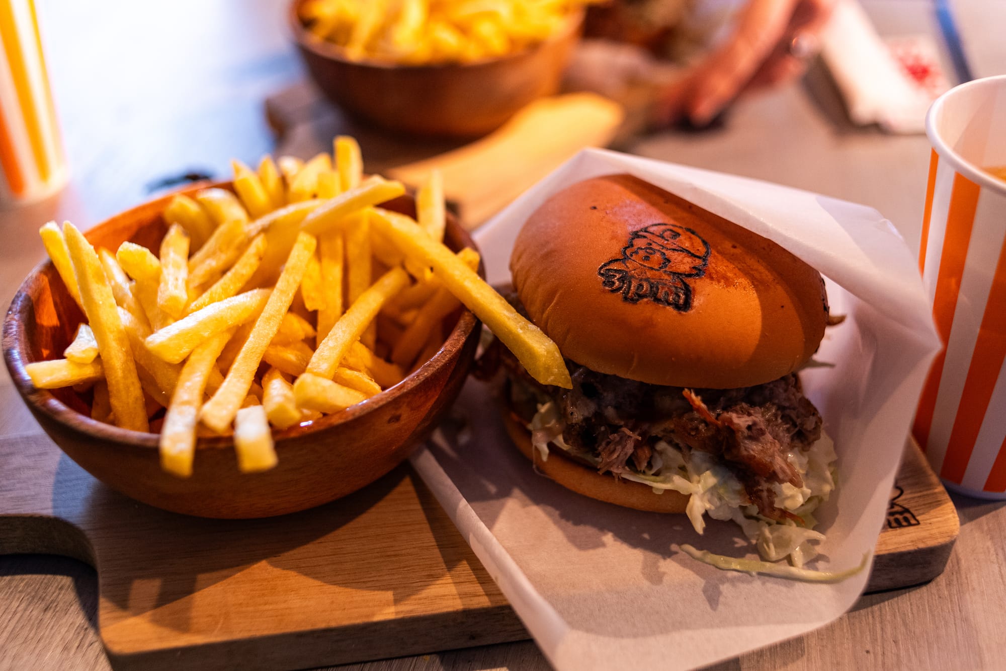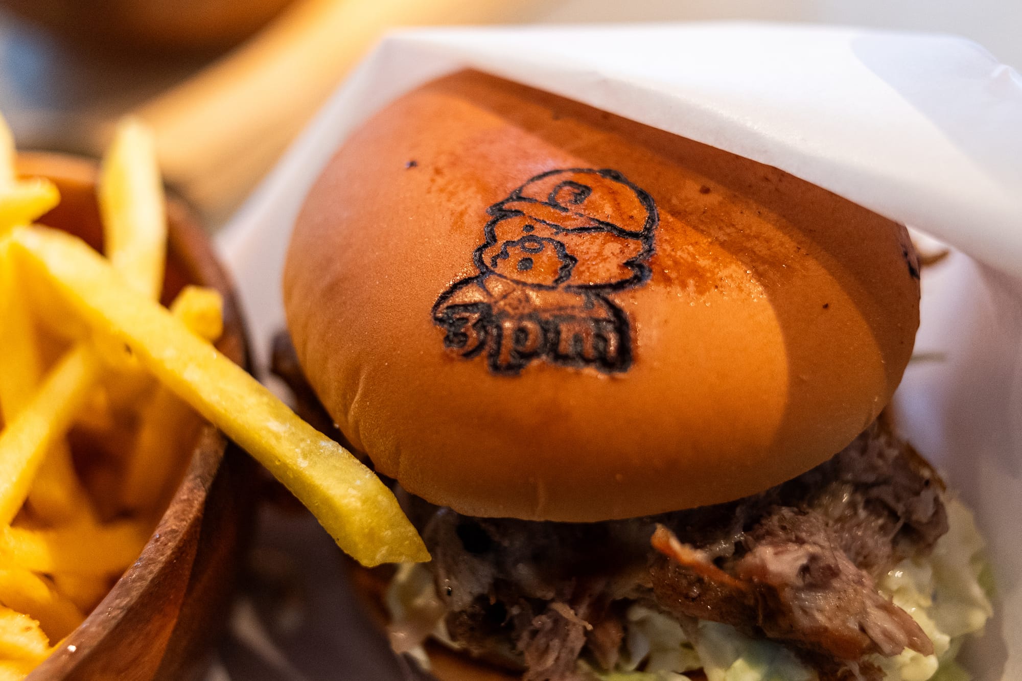 The pulled pork, crisply fried before being placed on the burger, tasted sweet, perfectly complementing the burger sauce. A layer of coleslaw beneath the meat added an extra flavor dimension. Also, the cute 3pm logo, based on the owner's dog, Fuku, is branded on the burger buns, adding a personal touch.