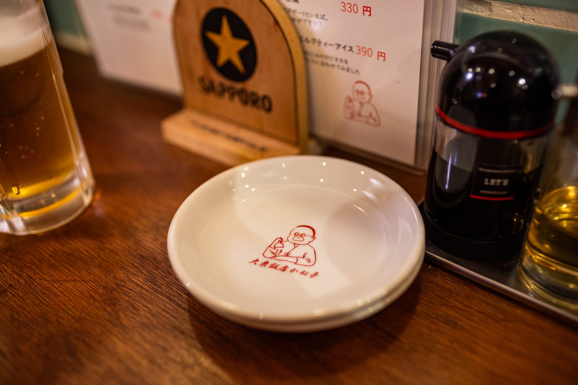 Kaneko's branding is as cool and unique as the izakaya itself. Their mascot, a cute pig-looking man wearing glasses, can be found everywhere from t-shirts to plates and glasses. It's a fun and playful touch that adds to the overall charm of the place.