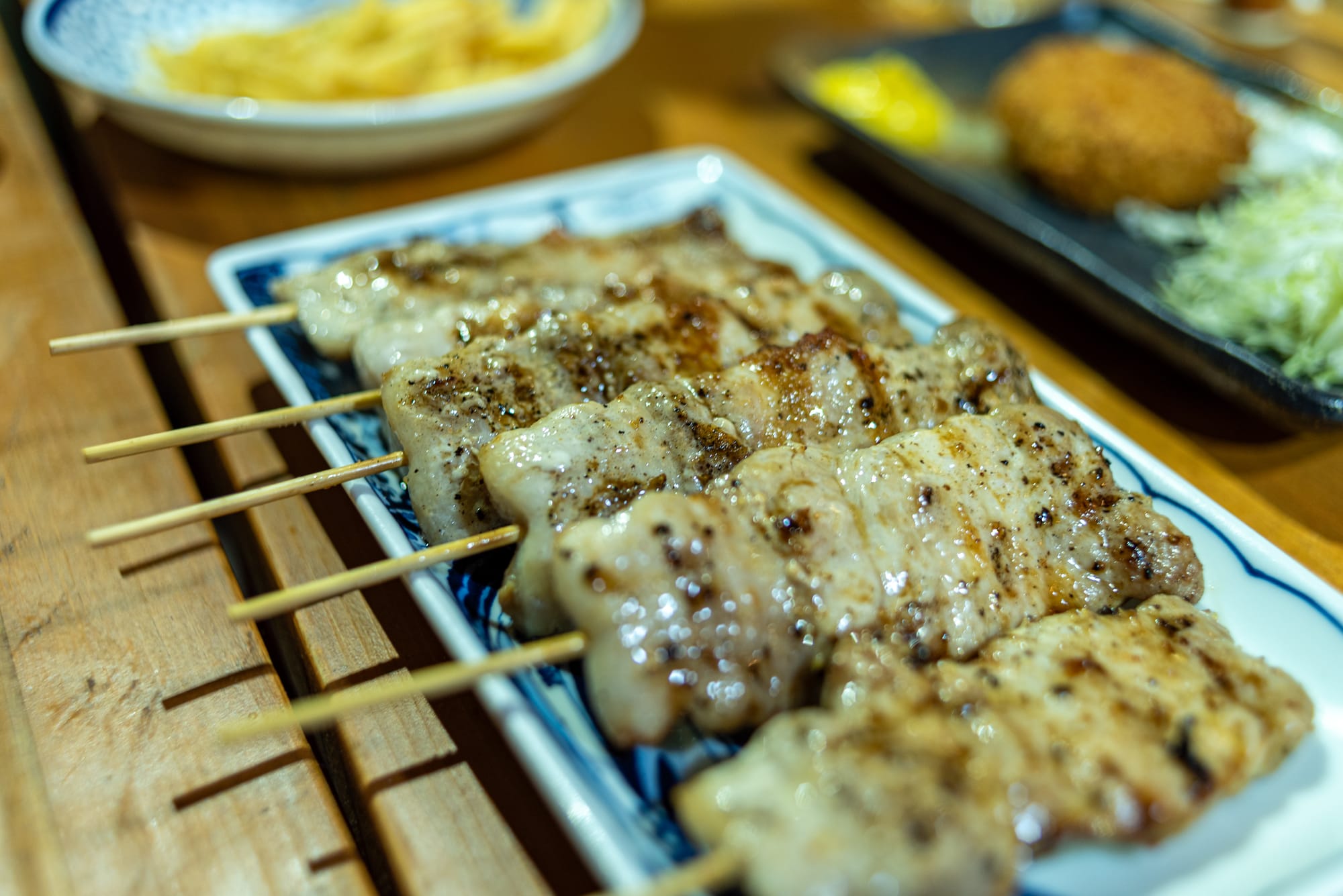 The izakaya is cleverly split into two floors, each offering its own culinary adventure. Downstairs, you're greeted by the sizzle and smoke of kushi yaki, skewers grilled over an open flame, until the clock strikes 11:30 PM. Upstairs, the night stretches until 3 AM on the weekends, with more regular izakaya-style delights like their crispy gyoza, which strikes the perfect balance between crunch and juicy filling.